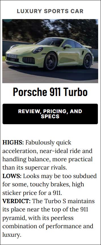 結論: ターボSは性能とラグジュアリーを比類なきレベルで融合させることで911の序列における最上位に近いポジションを堅持し続けている。