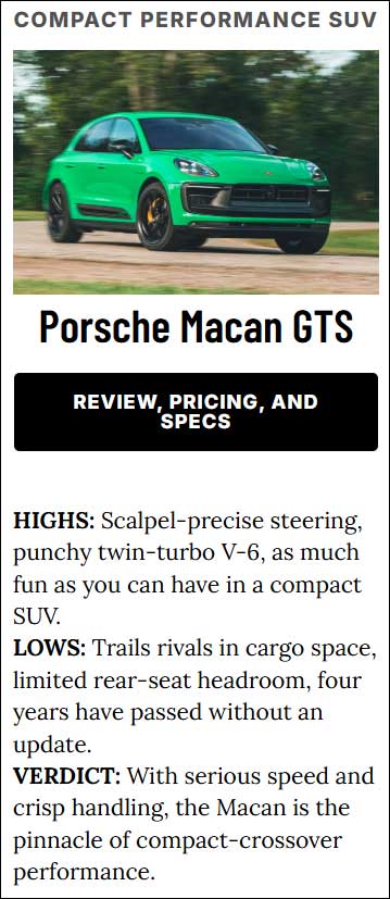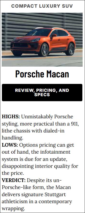 ポルシェ・マカンが『Car and Driver 』のベスト10トラック&SUV賞を受賞
