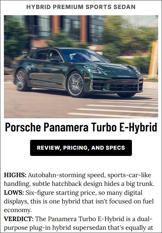 結論: パナメーラE-ハイブリッドは高効率なファミリーカーと本格的なスポーツカーの狭間を見事なバランスで歩む一台である。