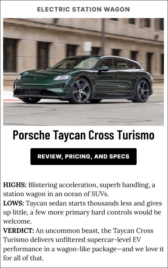 結論: 稀有な存在であるタイカン・クロスツーリスモは、ワゴンというパッケージの中に飾り気のないスーパーカー級EVパフォーマンスを注ぎ込みそのすべてが愛おしい一台である。