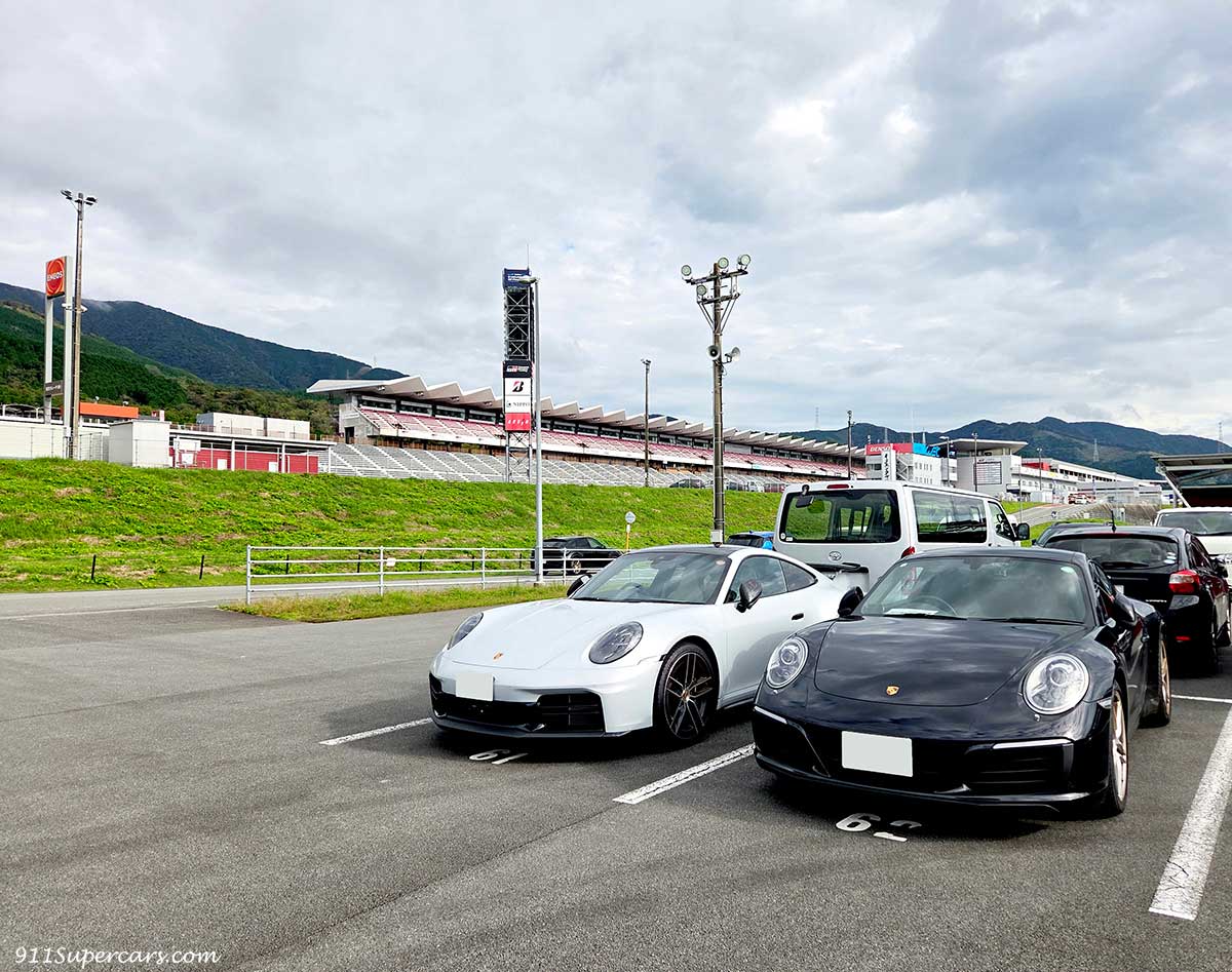 雨予報もあったことから、この日は黒カレラで行きました。駐車場はちょうどお隣様がポルシェだったので朝から嬉しい。