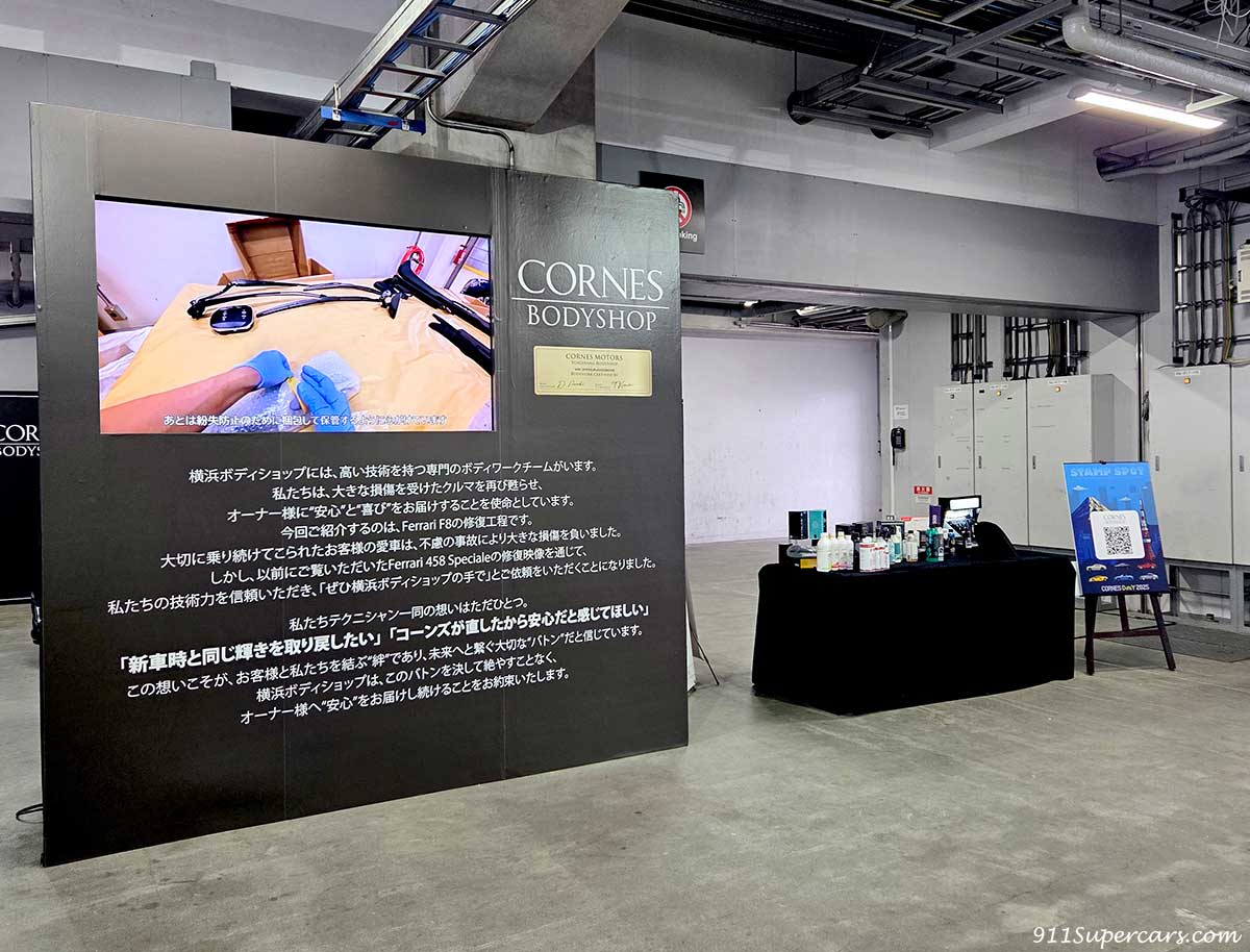 ピット内のエリアの方に入ってみると、横浜ボディショップの紹介や…