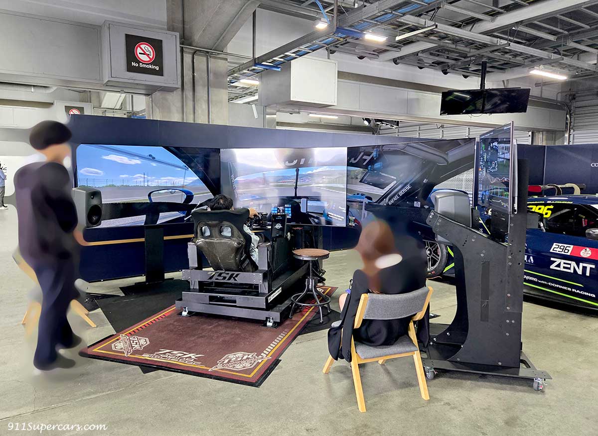 体験できる巨大3面モニターでのレーシングシミュレーターなど。