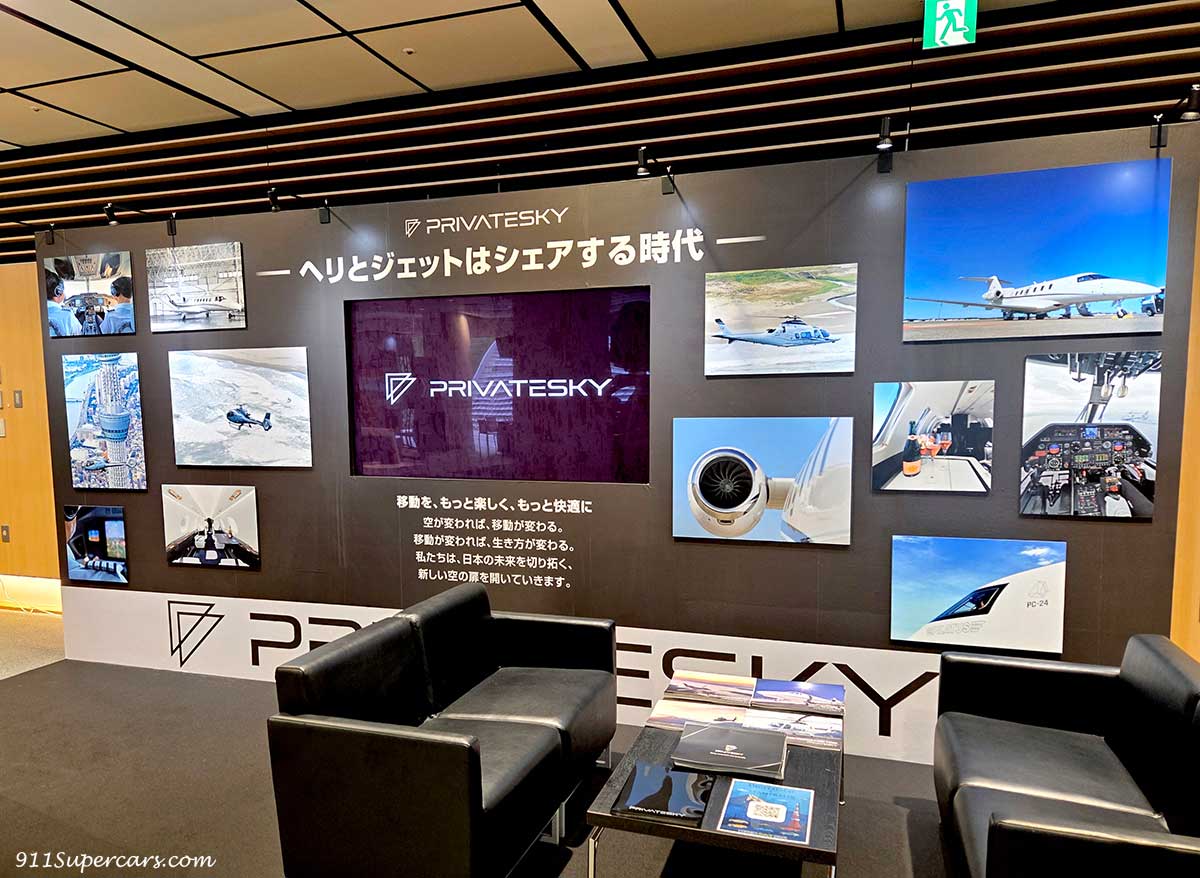 ヘリコプターやプライベートジェットなどの会員制シェアサービスの『PRIVATE SKY』のブースも。
