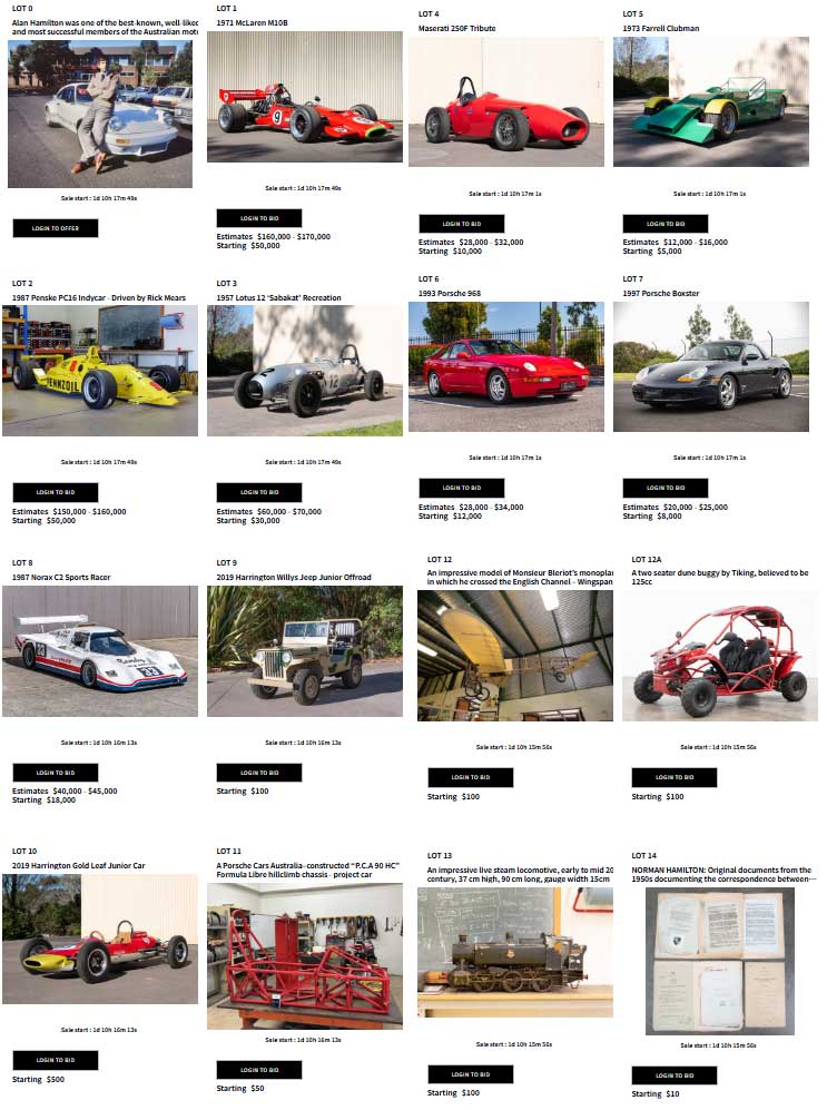 オーストラリアのモータースポーツと地元自動車産業の中心人物であったといわれる故アラン・ハミルトン(Alan Hamilton)氏の個人コレクションがDonington Auctionによる大規模なオンラインオークションに出品されるそうです。