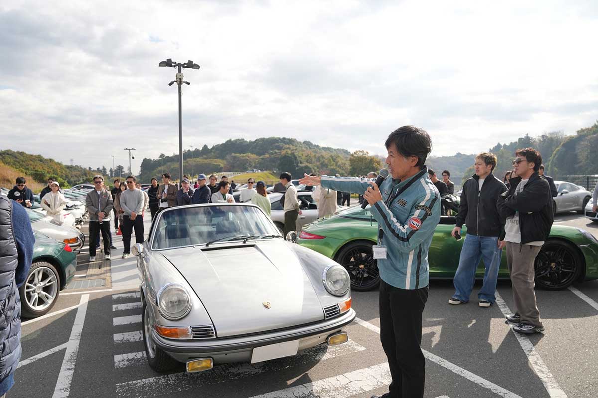 この日のゲストはポルシェ専門誌『911DAYS』副編集長・関友則氏で、歴代タルガのオーナー様の愛車を前にトークセッションが開催されたとのこと。