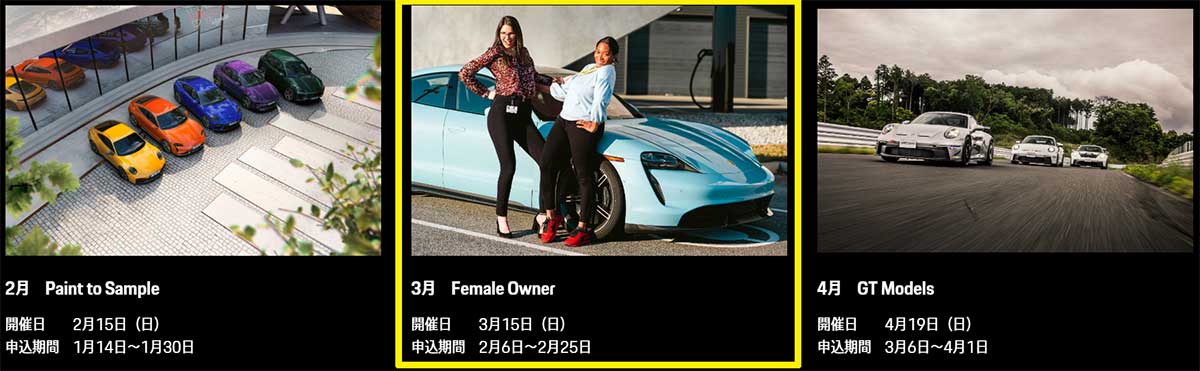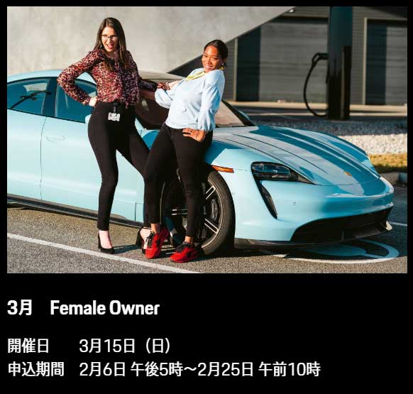 どなたでも参加可能ではありますが(参加希望が多い場合は抽選)、PEC東京様がせっかくこのようなテーマを用意して下さったので、この機会に多くのポルシェ女子さんたちが集まったら楽しいだろうなと考えています^^
