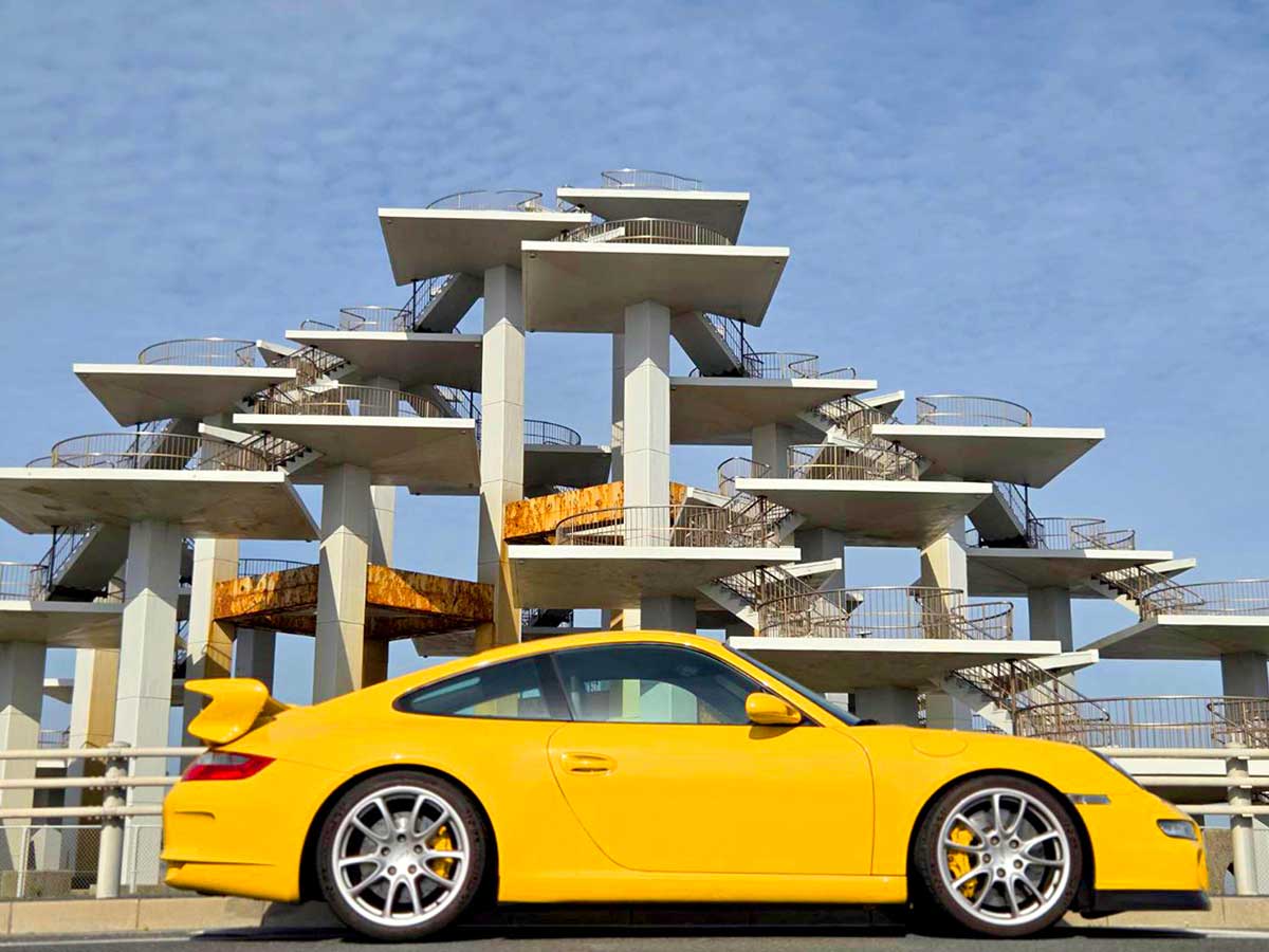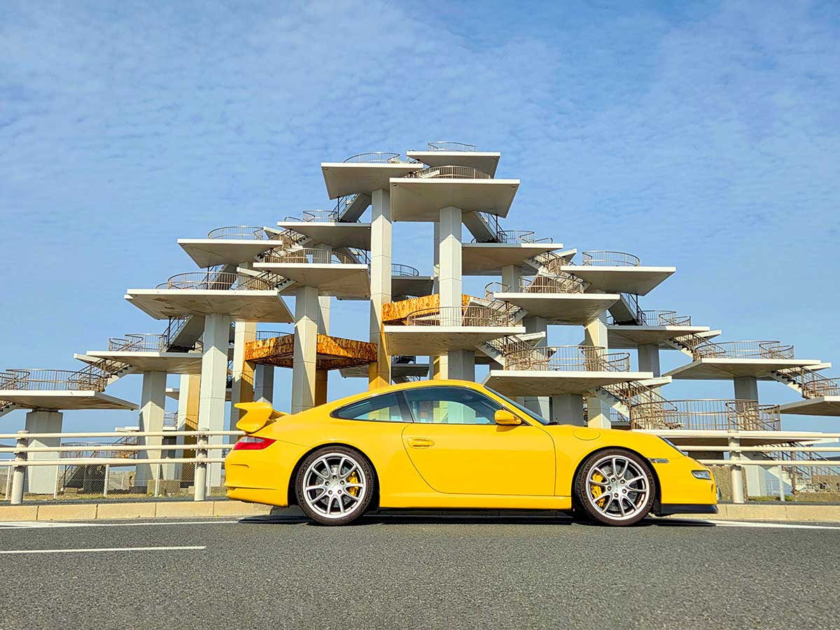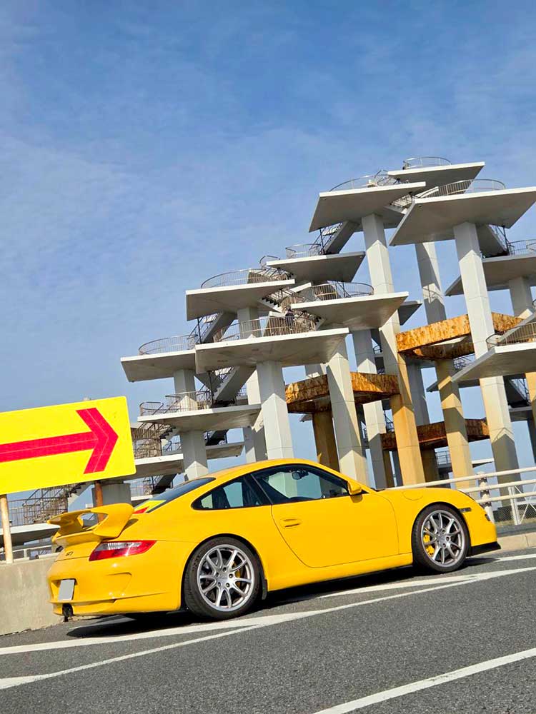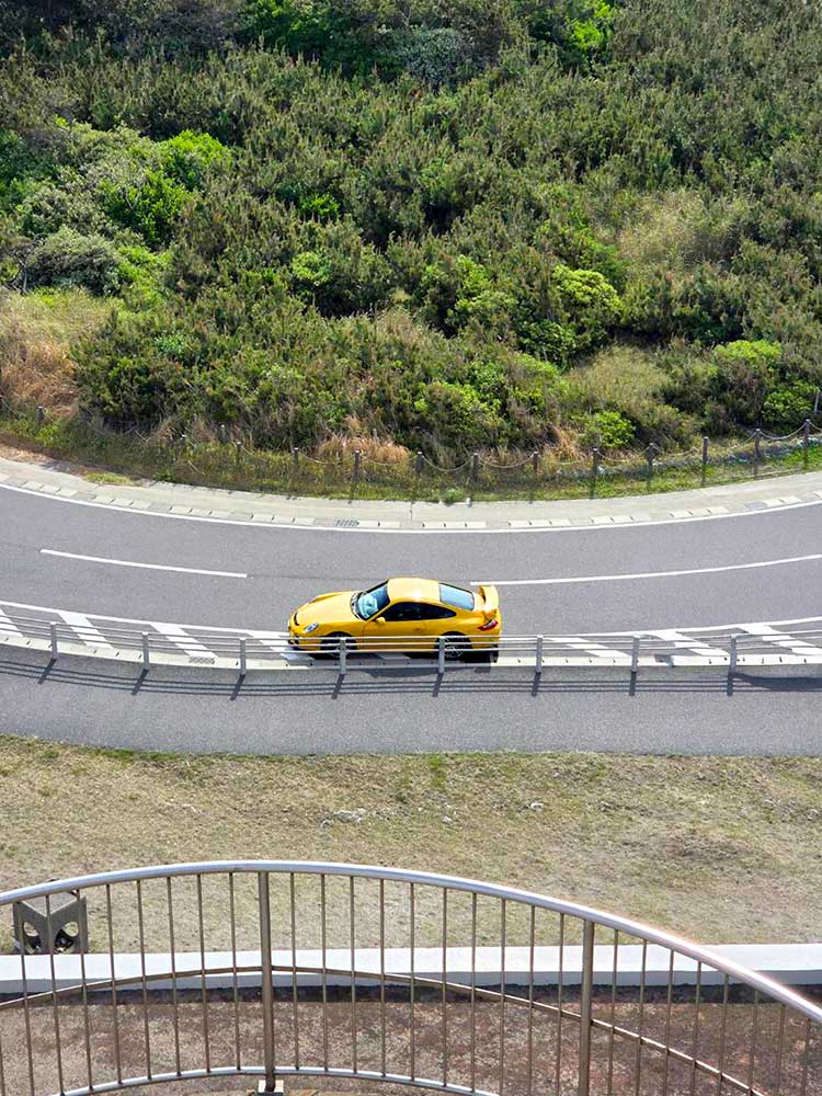 Porsche 911 GT3... in front of the observation deck at Futtsu Cape.