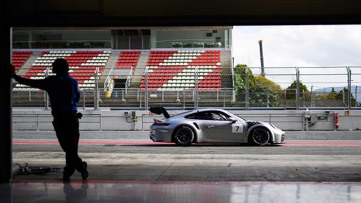 The new Porsche 911 Cup made its European circuit debut at the Circuit de Catalunya in Barcelona, and all of the 911 Cup vehicles at this time were painted in the original GT Silver Metallic color.