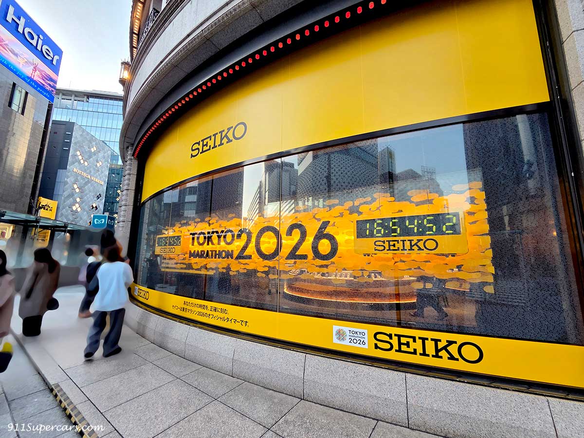 This is what it looks like looking out from inside the store. Porsche Studio Nihonbashi is located at the intersection of Eitai-dori and Showa-dori, which is about 15km from the start of the Tokyo Marathon.