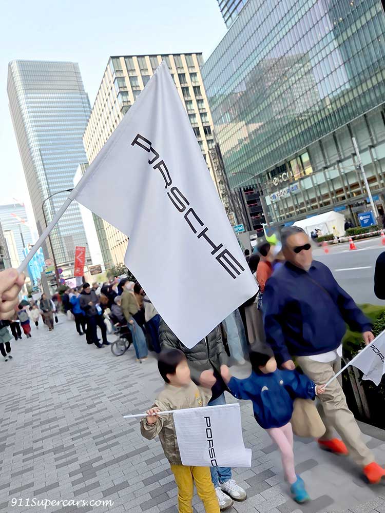People from overseas were also having fun taking commemorative photos with Porsche flags in their hands, and even a little distance away we came across children walking around waving PORSCHE flags.