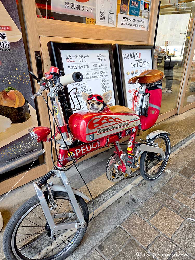 Also, there was a really cute dog on a bicycle parked in front of the store, and I thought, "Is that a stuffed animal?", but when I looked closer, I realized it was a real dog.