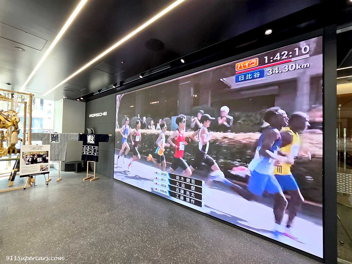 The Tokyo Marathon was broadcast on a large screen inside the Porsche Studio Nihonbashi store, so I was able to not only see the runners actually running in front of me, but also get a sense of the leading group and the overall feel of the marathon at the same time.