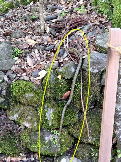 蛇が大の苦手な私は、通常であれば蛇が目の前に現れたら叫んでその場を走り去るわけですが(蛇の抜け殻が落ちていただけでも叫んで走り去る)、この時は不思議と自然に「あ、蛇だ」と受け入れることが出来て、叫ぶことも立ち去ることもなく、不思議に落ち着いた気持ちで蛇を見ていました。