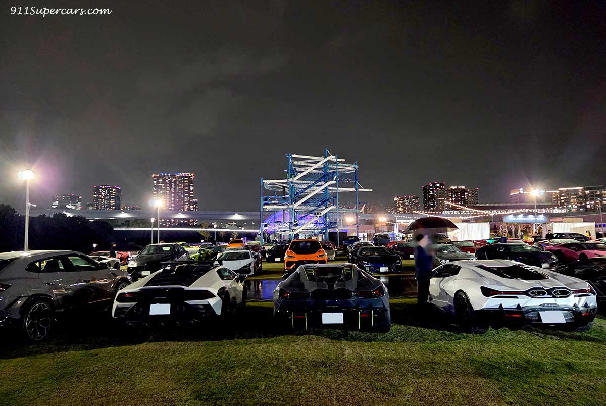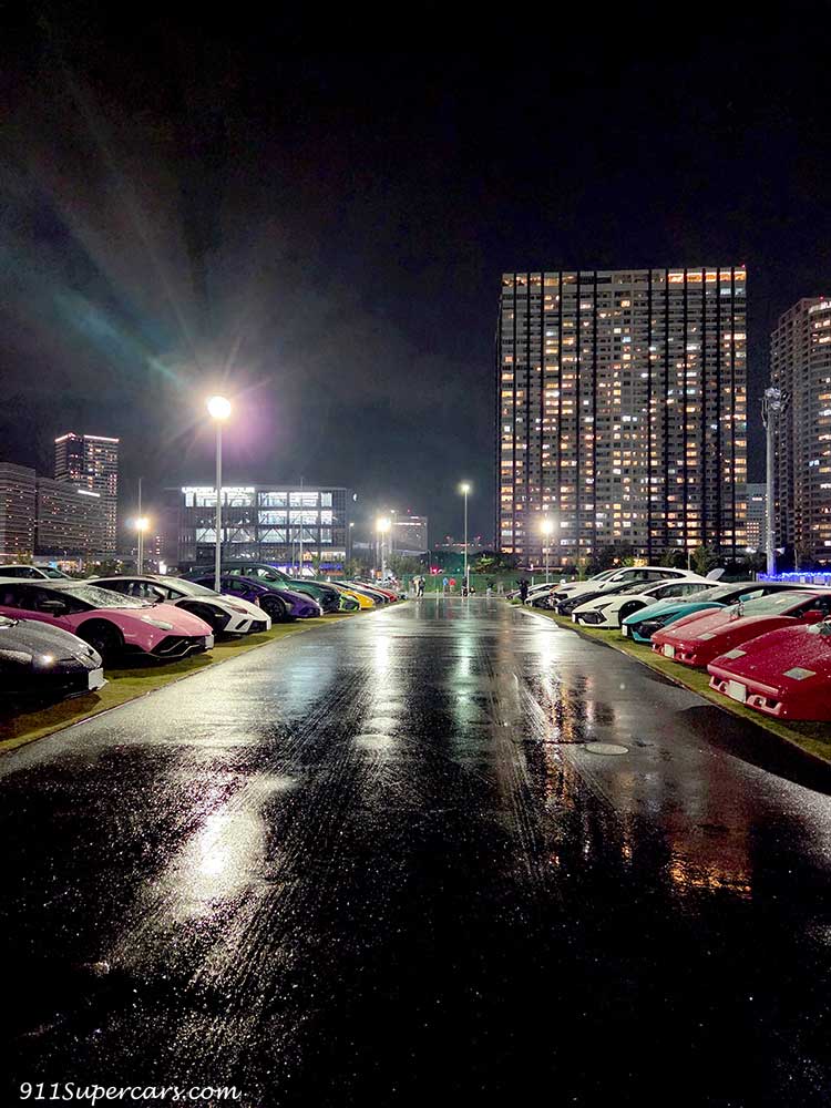 雨の夜だからこそのなんとも素敵なランボルギーニたち。