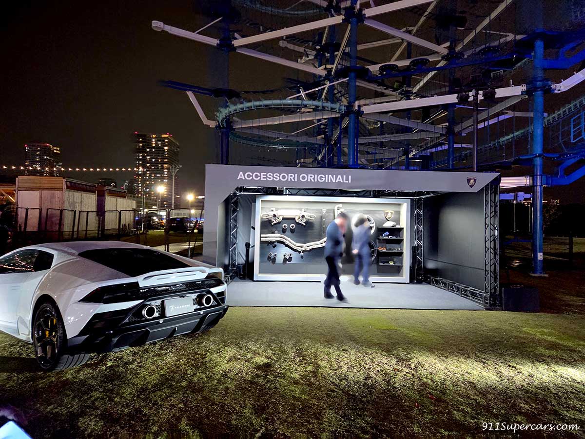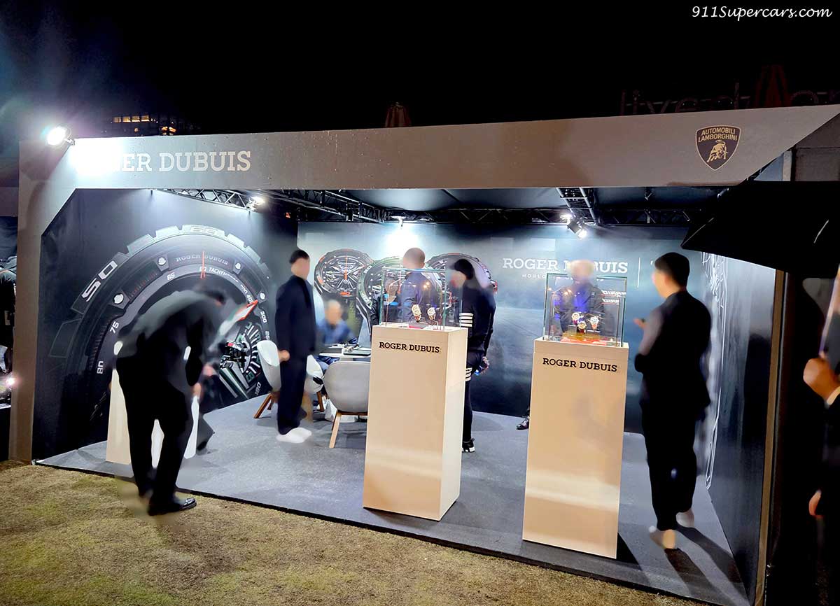 お車たちだけでなく、ウラカン・スーパートロフェオEVO2のスポンサーであるスイスの時計メーカー、ロジェ・デュブイ(ROGER DUBUIS)の出店なども。