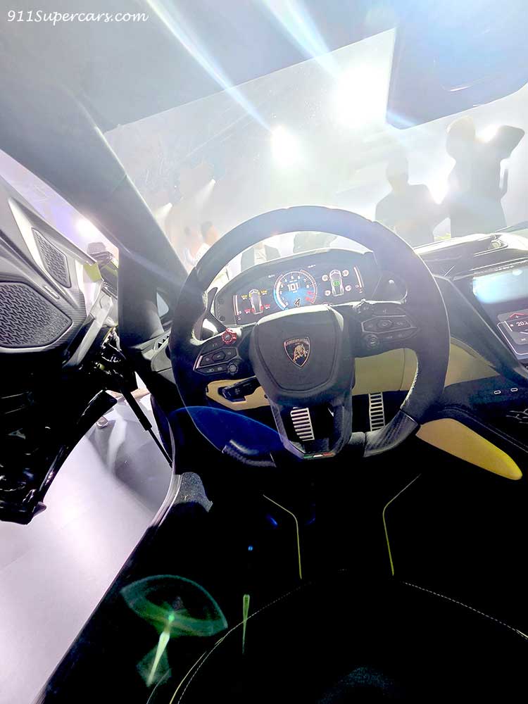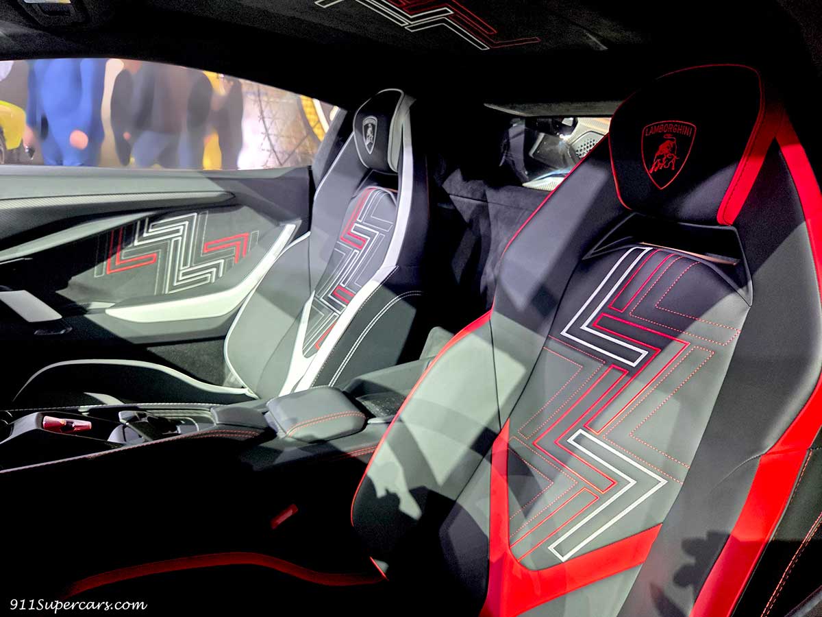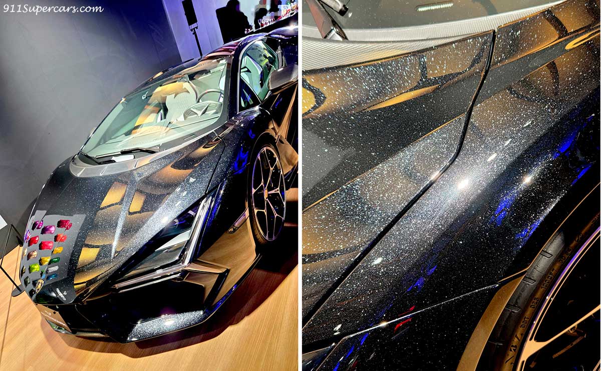 ランボルギーニが提供する完全なるカスタマイズプログラムである『アド・ペルソナム』の紹介コーナーもあり、そこに展示されていた1台のレヴエルトがいたのですが、これがまた凄かった。