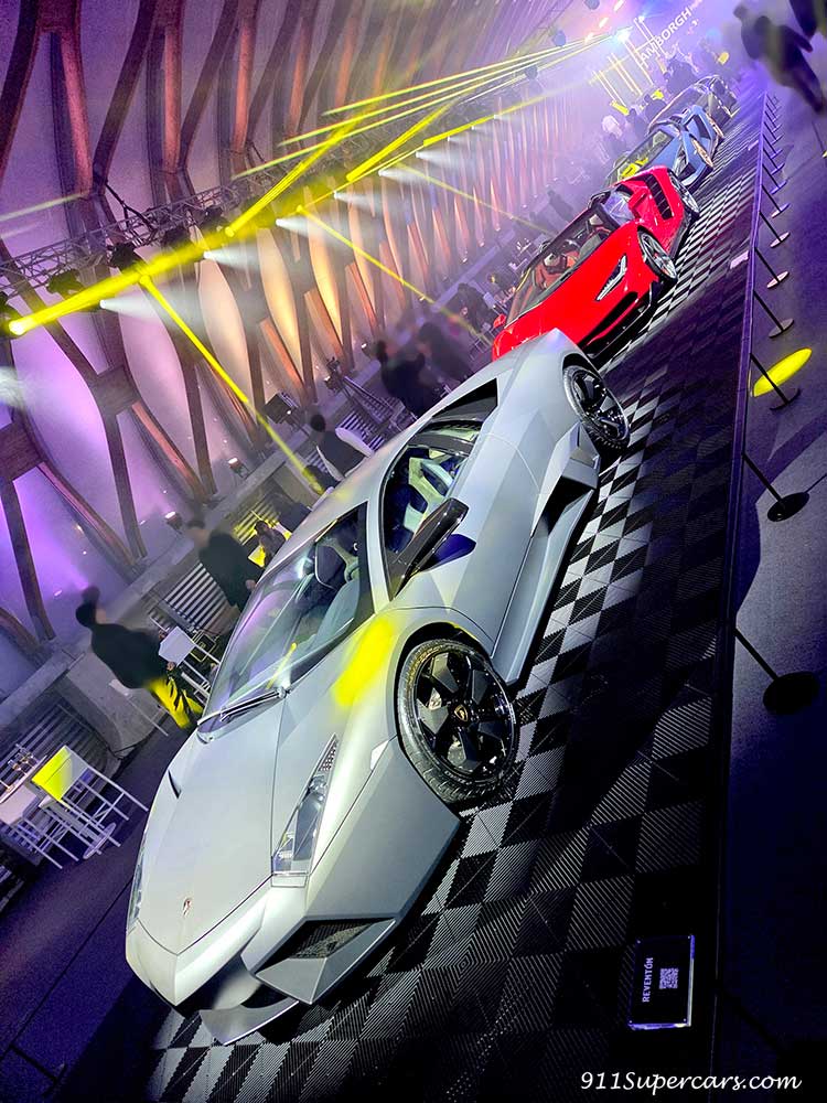 手前からレヴェントン(Reventón)、チェンテナリオ(Centenario)、シアン(Sián)、そしてカウンタックLPI 800-4(Countach LPI 800-4)。