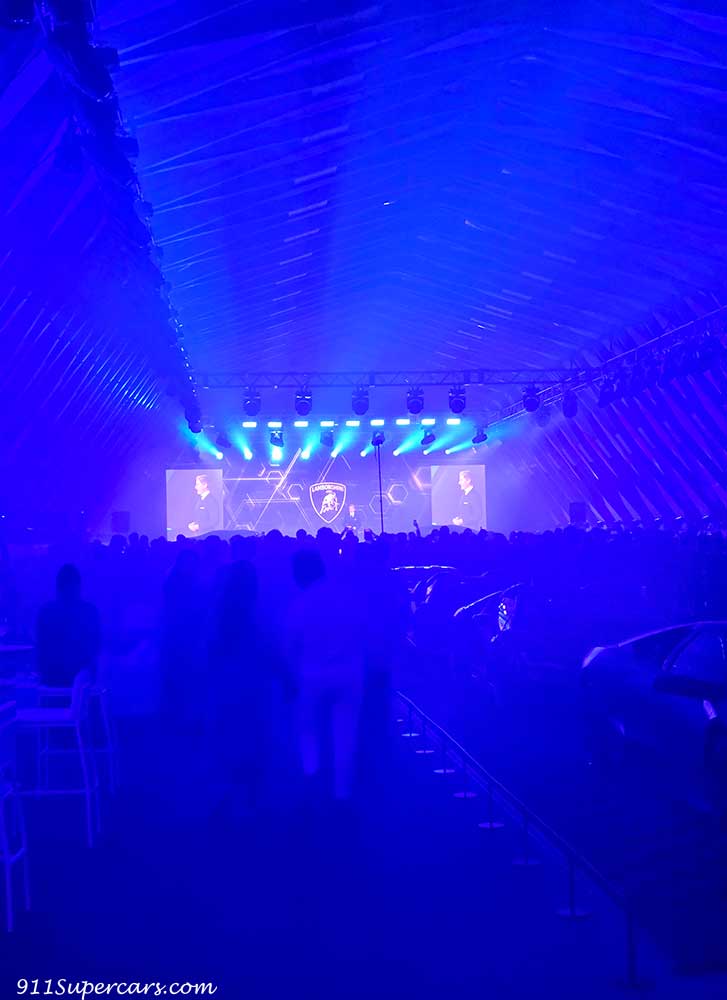 いよいよ会場ではランボルギーニCEOのステファンさんがこの日お披露目されるお車の発表をされる時間になったのですが、やっぱり我が家はなかなかステージの方に行きつけず。