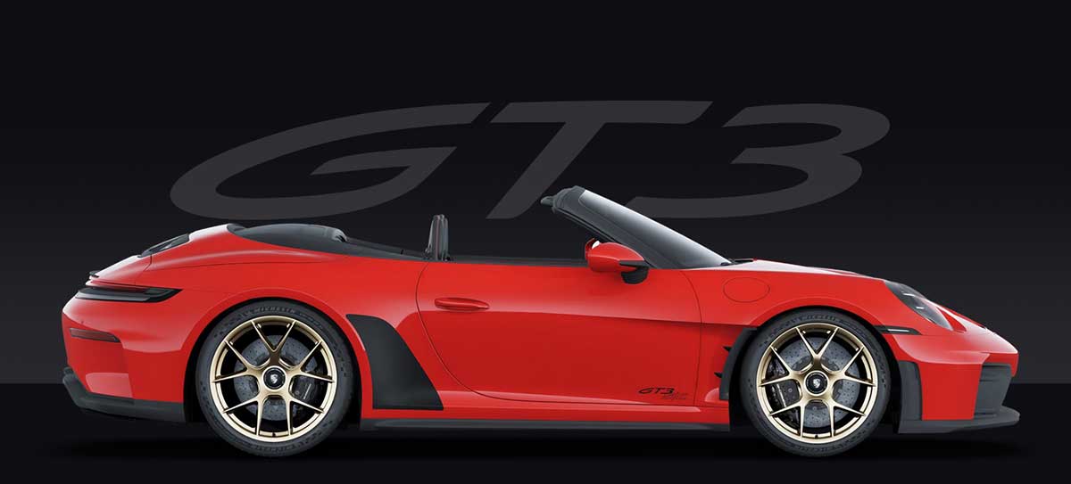 このモデルはポルシェがGT3として初めてフルオートのコンバーチブルトップを備えた911 GT3であり、ドライビングの楽しさを念頭に置いて設計されているモデルとのこと。