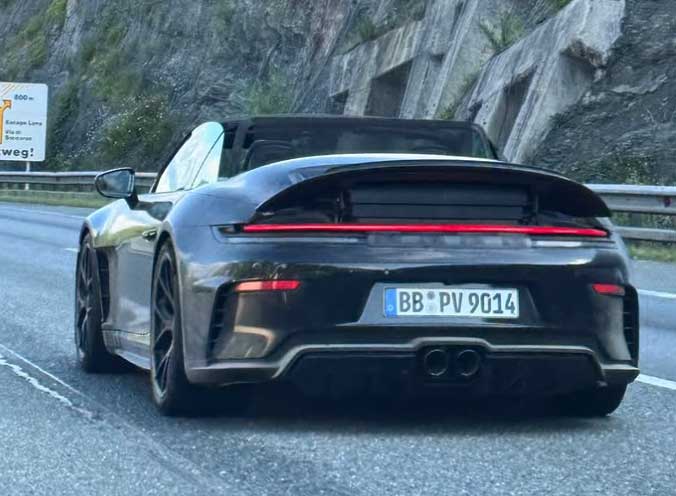 スパイショット写真からすると、中央に取り付けられたツインエキゾーストからこの車がGT3からのものだとわかると言われており、また格納式のリアスポイラーはGT3ツーリングの快適性重視の方に近いもの→大きなリアウイングはカブリオレには難しいからかと思われます。