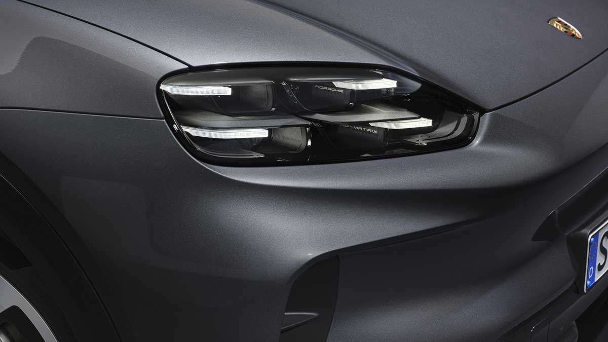 • カイエンターボEVでは専用カラーであるターボナイトの数多くのコントラストエレメントが特徴
