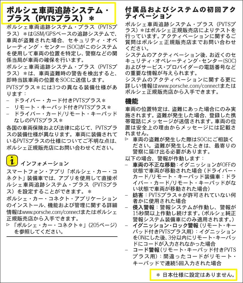 ちなみに日本に入ってくるポルシェにこのPTVSが標準装備、またはオプションでついているのかというと、うーん、わかりませんでした。