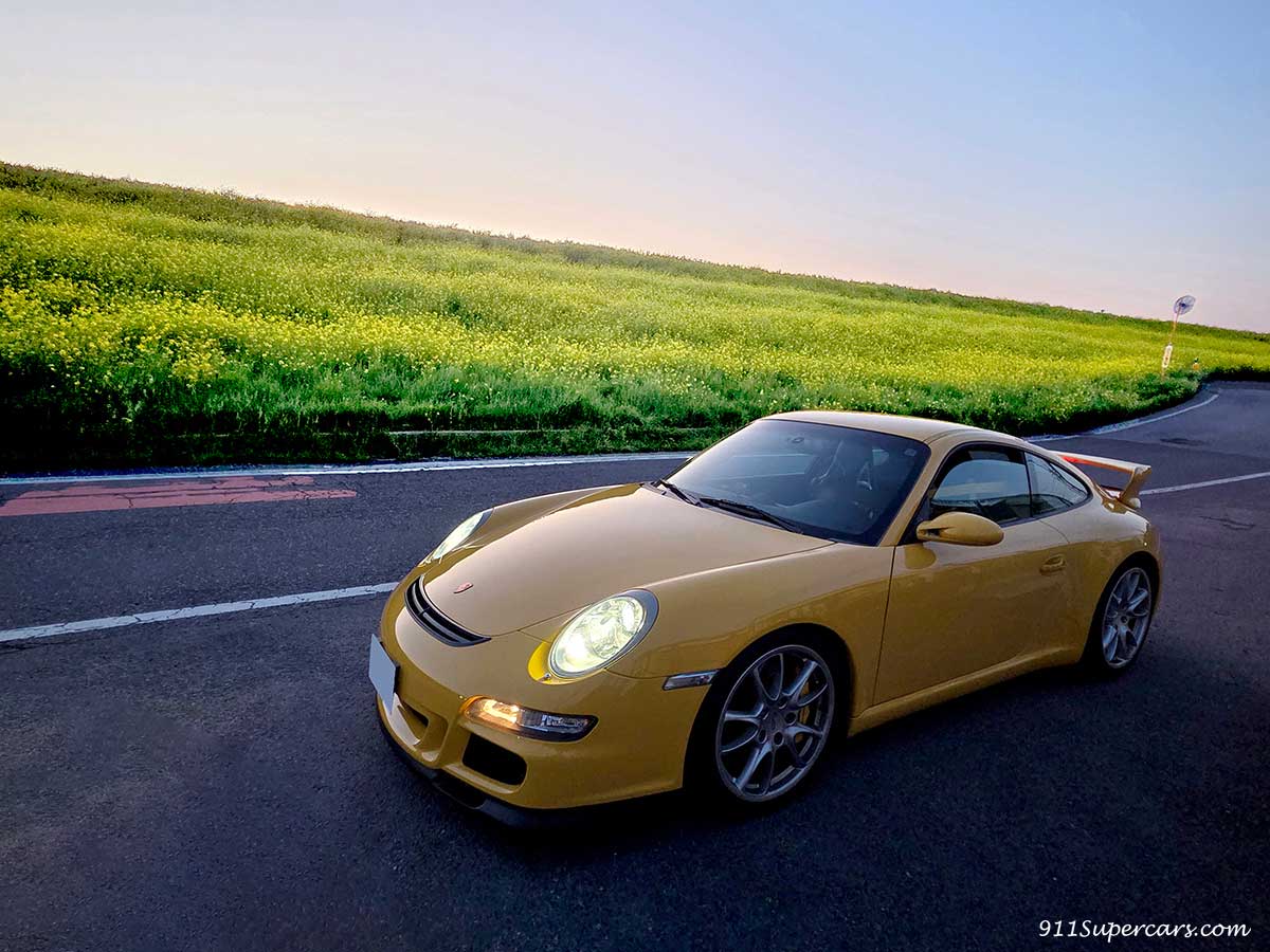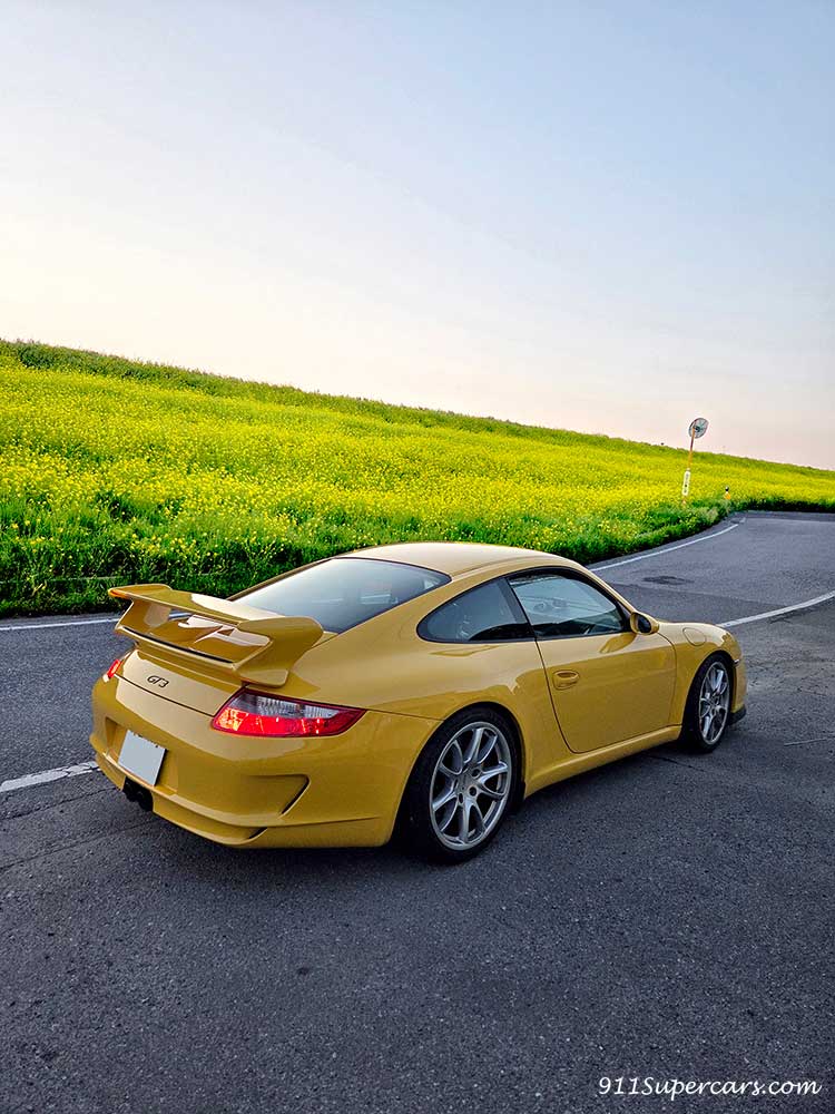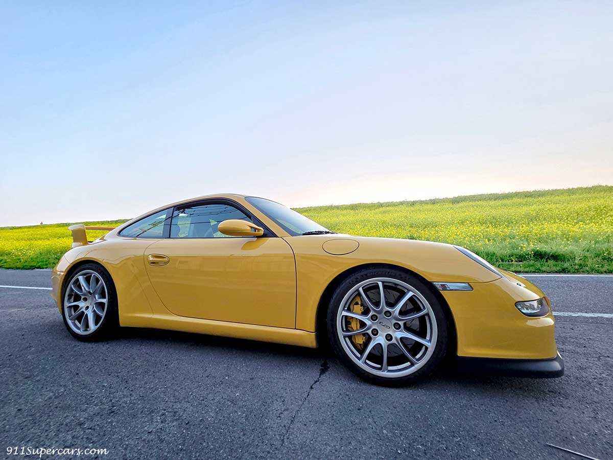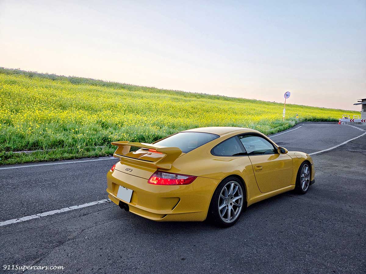 またまた連続で黄色のGT3の話になってしまうのですが、バッテリーあがりから復活した997.1型のGT3と一緒に、先日さっそく朝早くからドライブしてきました。