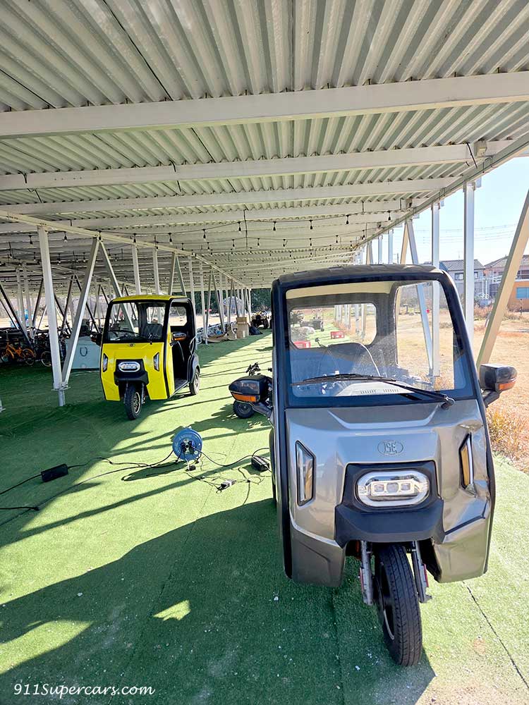 3人乗りで運転手が前に座り、2人目または2~3人目の人は後部座席に座る形に。