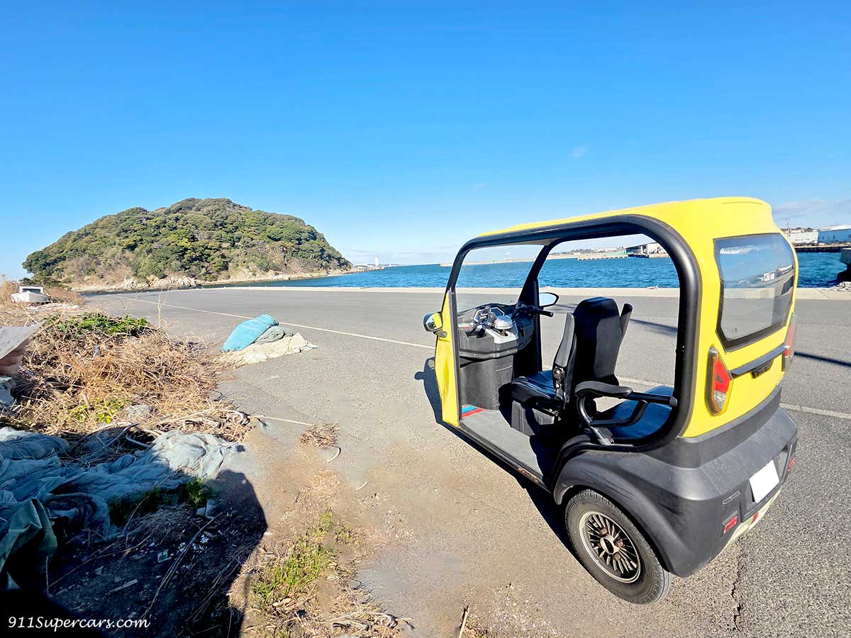 快晴となった篠島を美しい海を眺めながらトゥクトゥクで周るのはなんとも気持ち良かった…のですが、盲点としては車体の左右がオープンになっているので、1月中旬の気温では「寒い」!!