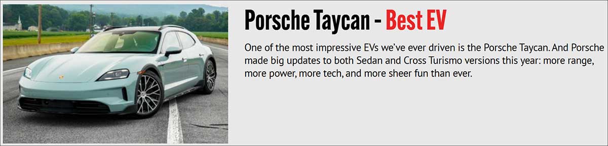 さらにはタイカンもベストEV賞を受賞。
