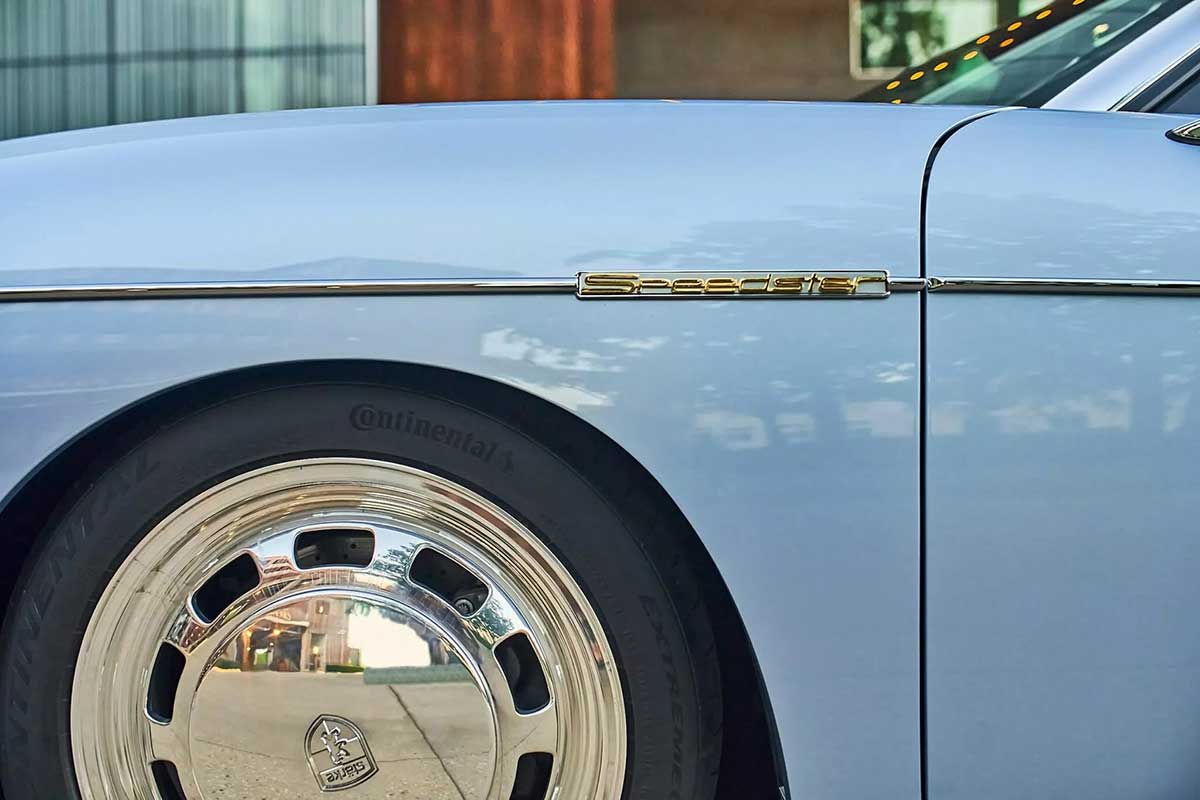 エクステリアパネルの多くはオリジナルのスピードスターを忠実に再現しているそうで、フロントエンドにはオリジナルの円形ヘッドライトと膨らんだホイールアーチなど。